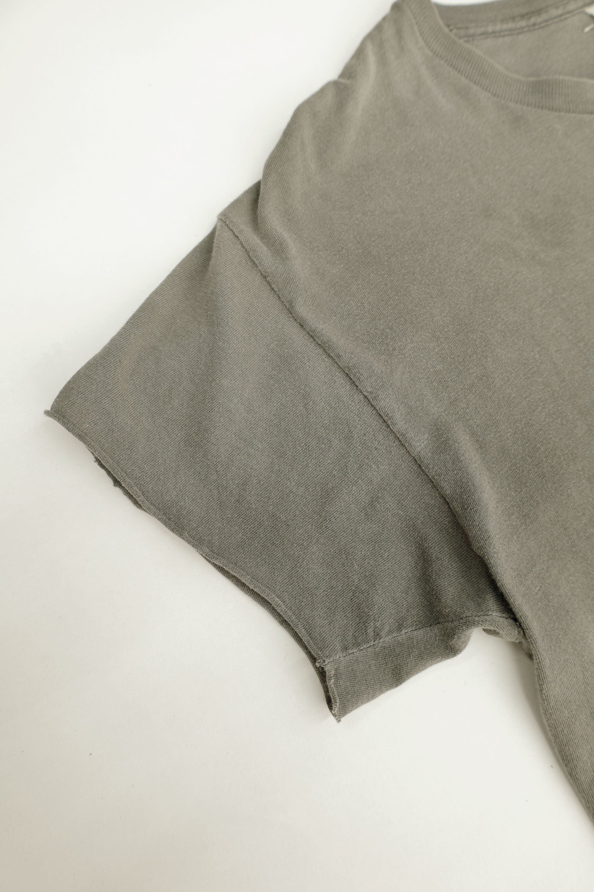 Heavy fade, cut-off sleeves, and a retro print—full of atmosphere.