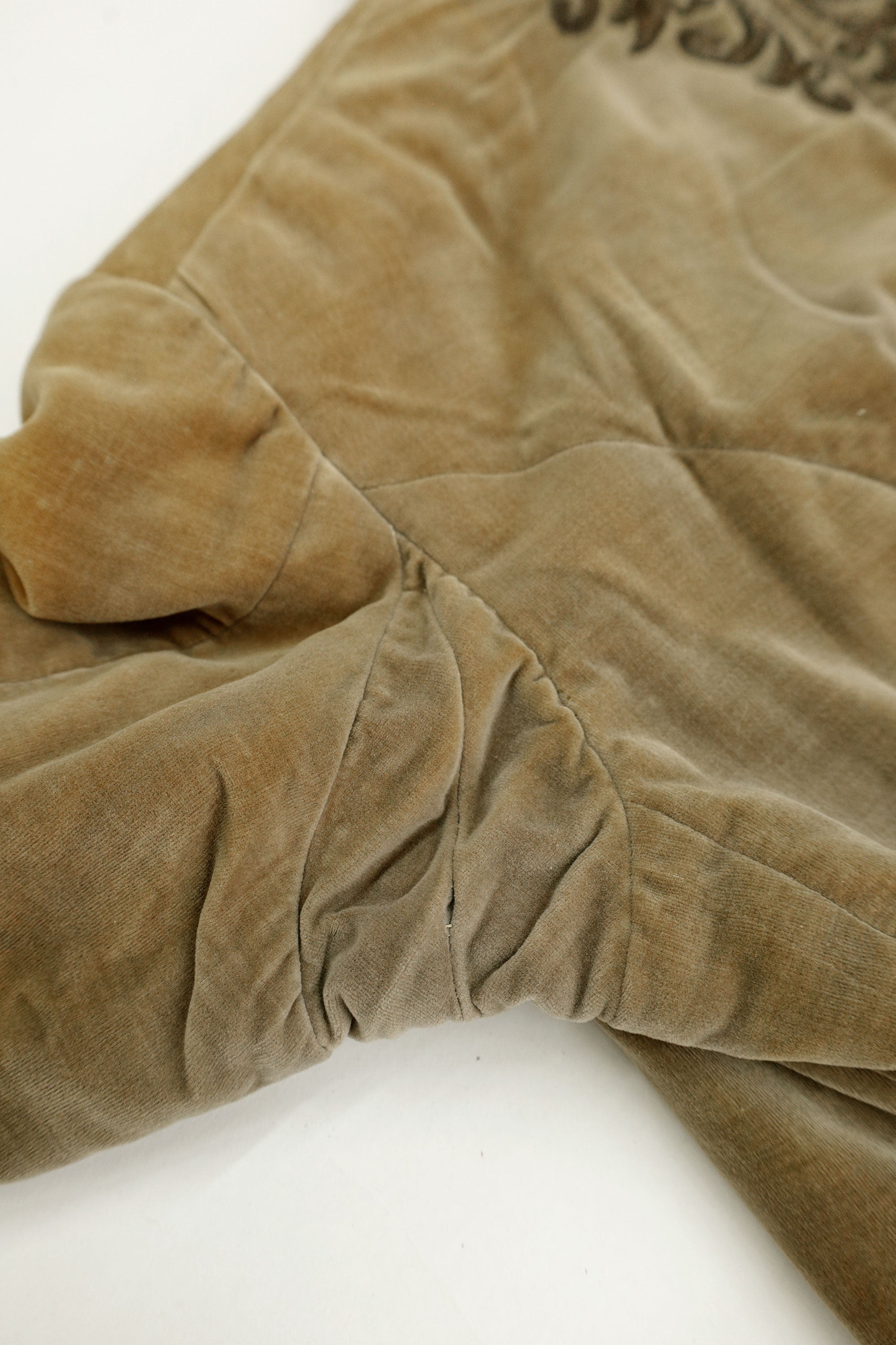 This piece is best understood as an archival garment, valued for its materials, surface aging, and period craftsmanship rather than wearability.