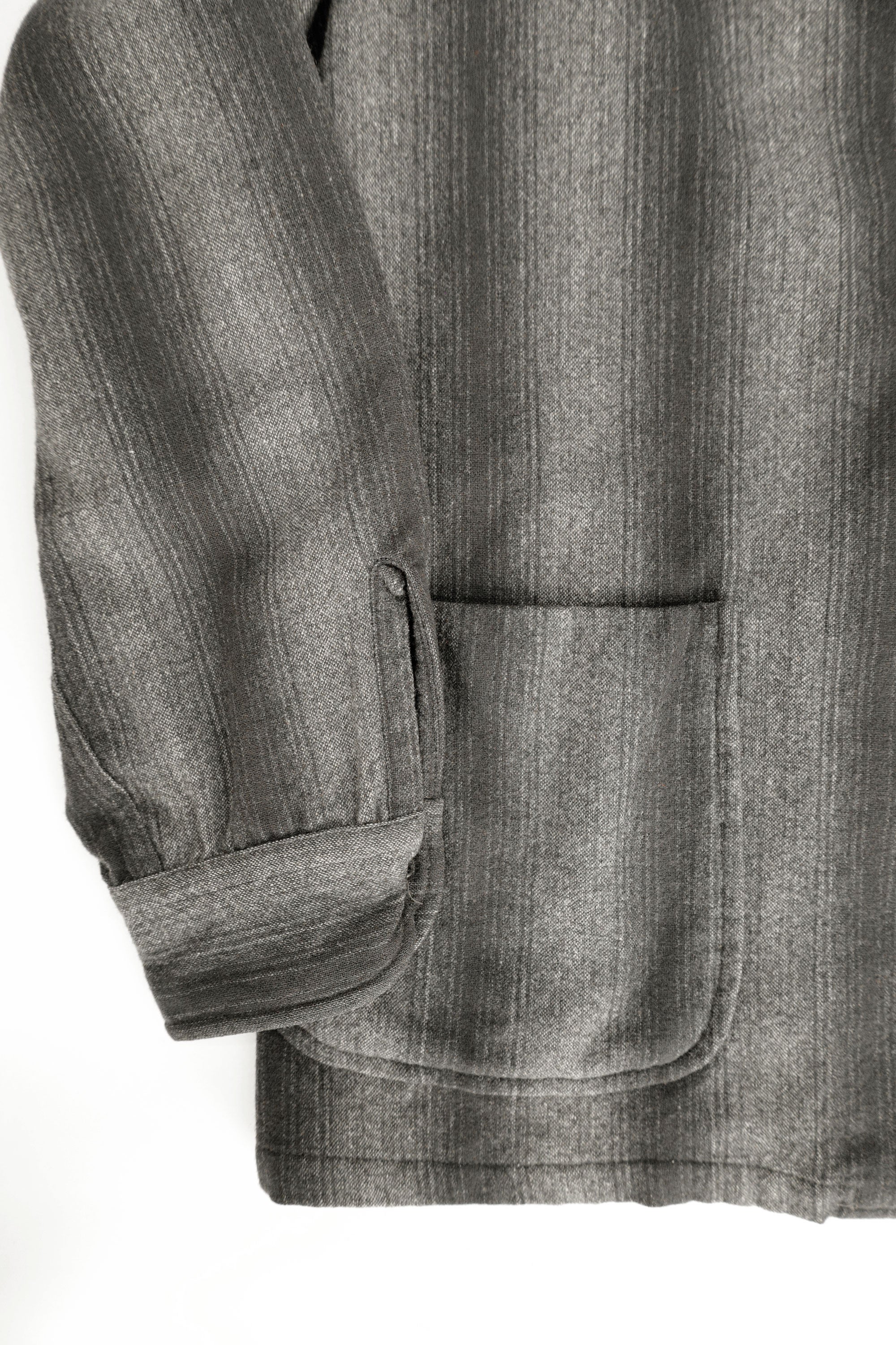 A calm monochrome wool jacket with a pattern that fades like a gradient.